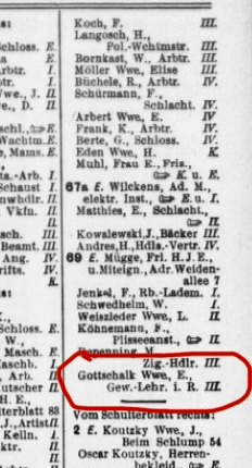Else Gootschalk lebte mit ihren erwachsenen Töchtern, Alice und Erna, seit 1927 in der Altonaer Straße 69, im 3. Stock des damaligen Hauses. Else Hirschfeld wurde 1874 in Hamburg geboren, von Beruf war sie Gewerbelehrerin. Sie zog mit ihrem Partner, Kurt Gottschalk, nach Bolivien. Alice wurde 1907 in Cochabamba, Erna 1910 in Arno/Bolivien geboren. Ihr Mann starb 1917 in Bolivien. Wann Else mit ihren Kindern wieder nach Hamburg kam, konnte ich nicht klären. Sie wohnte von 1925 bis 1926 in der Amandastraße 3 und zog 1927 in die Altonaer Straße 69.