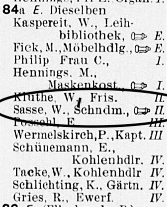 Sie wohnte nach ihrer Trennung in der Annenstraße 4 (St. Pauli), ab 1936 in der Rosenhofstraße 20 und ab dem 18. Mai 1937 als Untermieterin im Schulterblatt 84 – bei Familie Sasse.